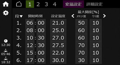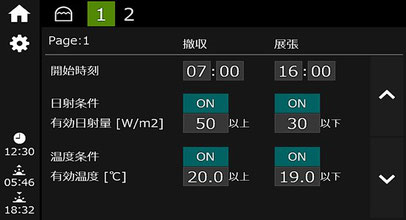 制御項目 | 換気窓(4)/カーテン(2) <オプション> 暖房(2)/冷房(1)/CO2(1)/加湿(1)/除湿(1)/灌水(1) ※( )内は最大系統数 ※各種インターフェース盤は別途必要となります。 | |